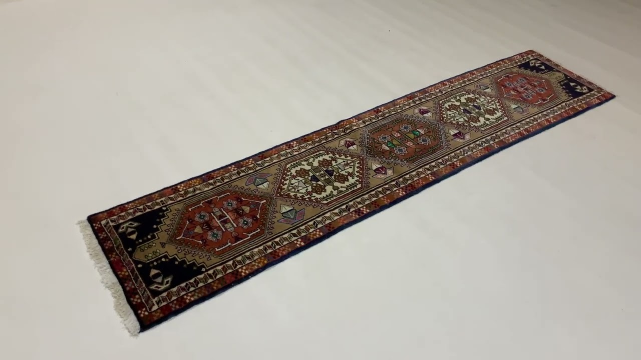 Entdecken Sie den handgeknüpften Ardebil Teppich (286x59 cm) von RUGEAST. Ein robuster und farbenfroher Läufer aus Wolle, der Ihrem Zuhause authentischen persischen Charme verleiht.